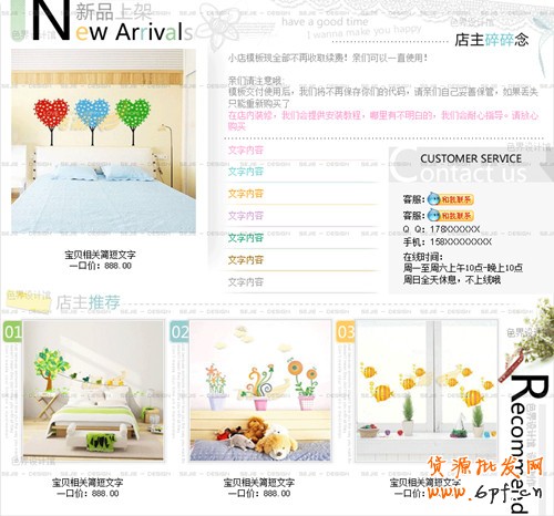 文字的大小和長度:編輯模板時請盡量不要改變模板中文字的大小,特別是寶貝的名稱和價格,文字太大或過多都會影響美觀,嚴重的會撐破模板!