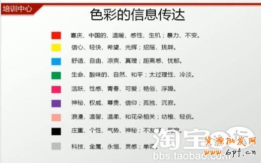 當然是讓顧客心情舒暢時,才會選擇我們的商品,如果顧客本身心情就不好,再看到你的店鋪有種壓抑的感覺 ,就不會選擇我們的商品了,所以我們要想辦法裝修讓顧客有好的心情!下面是顏色分析,請看下: