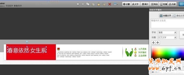 如上圖,然后點擊上排工具欄內的文字,在選擇第二給箭頭指向的動態文字,再在框內輸入自己店鋪的標題,下面有字體選擇和動畫效果選擇,大家都可以選擇嘗試一下看!然后確定修改,