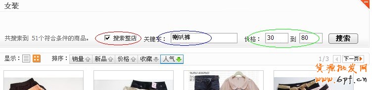 假設我們要設置的關鍵字為“喇叭褲”,在店鋪搜索中輸入“喇叭褲”