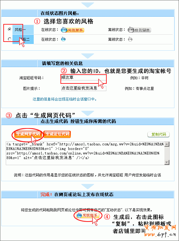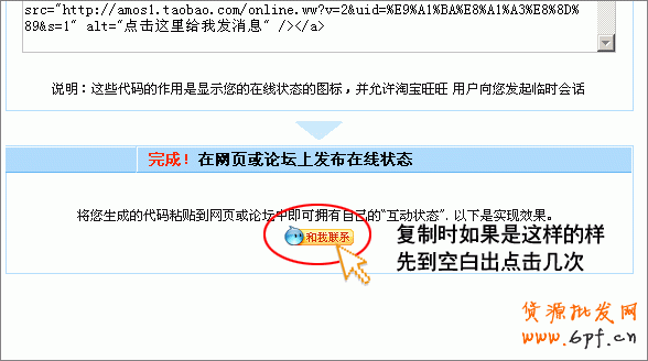 同理,沒有旺鋪的各位賣家,也可以照此方法的第1步第2步,把旺旺圖表貼到寶貝描述或者論壇、個人空間等地方。