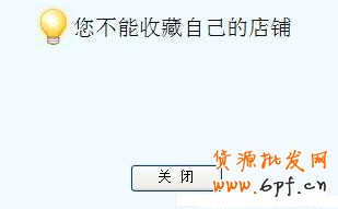 4、因為你自己當然不能自己收藏店鋪了。所以點擊點擊“收藏本店鋪”之后,彈出如下圖所示。