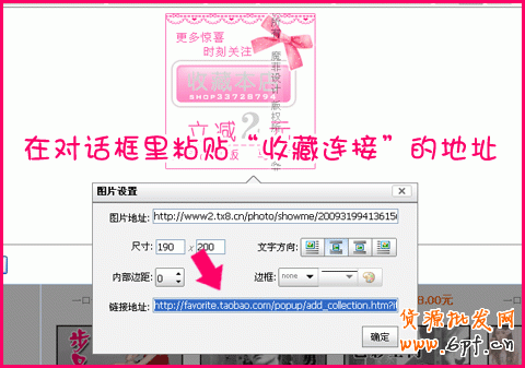 第二:準備收藏按鈕的連接。打開自己的店鋪,點“收藏本點鋪”,出現收藏設置頁面。在頁面空白處,點鼠標右鍵,點“屬性”,然后把屬性里的地址復制下來保存。