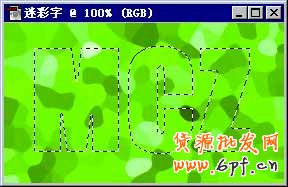2、設置前景色為亮綠色(R:0,G:255,B:0),使用油漆桶工具在圖象中單擊,將圖象用前景色填充。