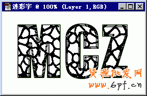 6、單擊文字工具,在彈出的菜單中選擇文字蒙板工具T,在圖象中單擊,在打開的對話框中設置font(字體)為Impact,Size(大小)為50 points,其余的位默認值,輸入字母“MCZ”,并把字母移至圖象中央。