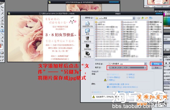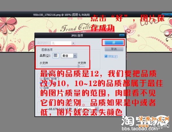 我并沒有什么壓縮圖片的軟件,我的解決方法很土也很簡單,一個步驟就搞定。只需要用到PS(在本文末尾有PS下載地址),這是為了保證圖片的質量跟下載下來的一模一樣,不會產生顏色丟失。(淘寶論壇的水印真杯具- -)