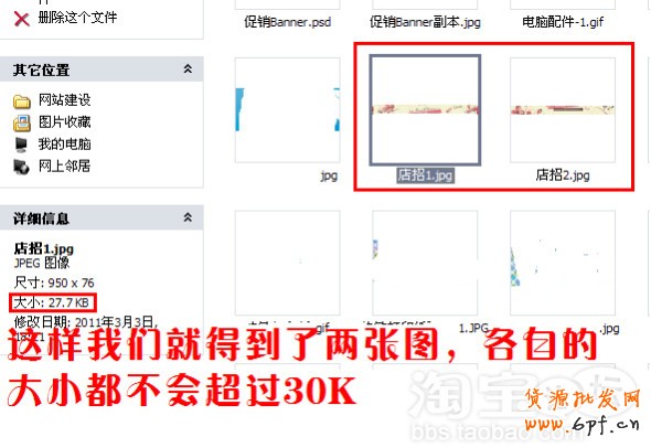 接下來我們要用到PS,即photoshop。因為在“管理素材”里面上傳我們自己的底圖,也就是我們的店招,大小不能超過30K。為了解決這個問題,我們要做的事情就是將原來的這個底圖截成兩份或者幾份。其實不一定要用PS,用系統自帶的畫圖也可以,但是系統的畫圖保存出來的圖片質量沒有PS好 。