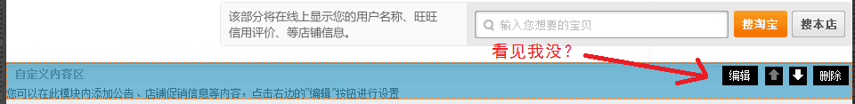 ①現在裝修界面最頂上的一個模塊就是你剛剛創建的自定義模塊,鼠標移上去~它會變成藍色哦~之后點擊編輯按鈕