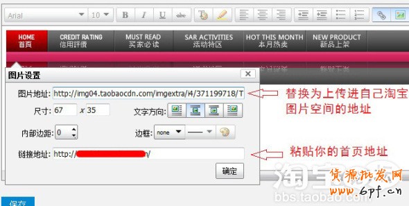 PS:做完以上步驟現在還不能點擊保存哦,因為,代碼里的圖片地址都是我的圖片地址喲~你必須上傳素材到自己的圖片空間,再替換進現在的模版里,怎么替換?很簡單
