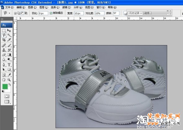 2.選用磁性套索工具,沿鞋子邊緣用螞蟻線把鞋子圈住,如果多選或者少選,用按SHIFT鍵或ALT添加或或減去。