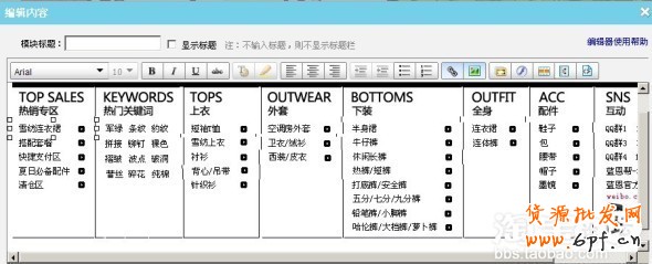 打開淘寶后臺,新建一個自定義模塊,切換到代碼編輯模式,將代碼復制進去。