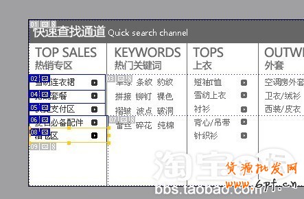 當前位置: 貨源批發網 » 網商學院 » 網店裝修 » 淘寶店鋪裝修 » 拓展版裝修-如何快速制作通欄分類導航