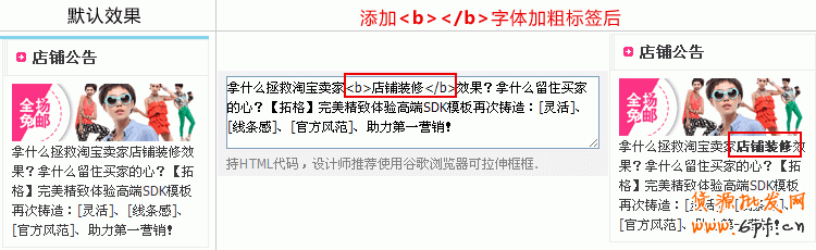 這里介紹幾個常用的HTML標簽使用方法,以編輯店鋪公告為例: