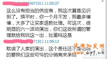 今年不想重蹈覆轍,不想賣校服,隨意上架了卻還是有人買了,5月前期的還算正常,可是19號下的單,21號供貨商點的發(fā)貨,今天還沒有物流,買家28號孩子要演出用的,供貨商說48小時內(nèi)會發(fā)貨,可是供貨商的客服一個一個都不出來,旺旺上隱身,QQ上裝傻,就是不出來,分銷群里快炸了,叫罵聲一片,都是沒發(fā)貨的。很讓人寒心的供貨商,這里說重視每一個訂單,大量鋪貨,48小時發(fā)貨,結(jié)果沒有貨也不說,急死的是分銷商,被投訴的是分銷商……