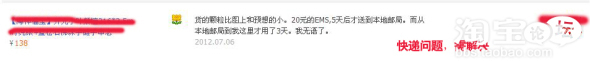 看到這里大家也應(yīng)當(dāng)明白了,因?yàn)榭蛻舯容^急所以認(rèn)為ems比較快所以選擇了多花10元錢用郵政快件來郵寄,而從這里我看出了這個(gè)中評(píng)是因?yàn)槲覀兛头?wù)沒有做到位所以引起的中評(píng),在我看來顧客給的很正常 ,一位顧客在買到東西以后在7、8天才收到貨并且認(rèn)為是加急的件,這種心情是可以理解的,要是我得給個(gè)差評(píng)也不解恨,從這里我看到我們的服務(wù)方面的漏洞。
