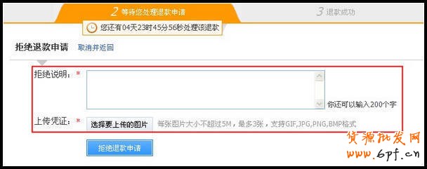 第二步:填寫拒絕理由,并上傳有效憑證,再確認點擊“拒絕退款協議”。