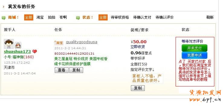 前提工作都完成后下面就是接發任務雙方的具體流程,雙方各個步驟的狀態將同步顯示,兩個一起看就行.