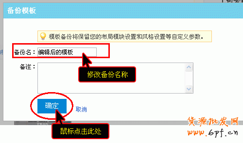 第3步:點擊“備份并應用新模板”,會把模板做一個備份,方便下次查找和修改
