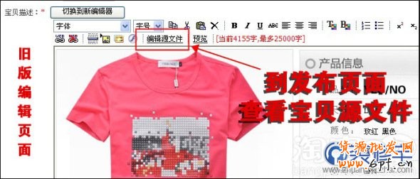 步驟四:打開發(fā)布寶貝頁面,查看寶貝源文件。