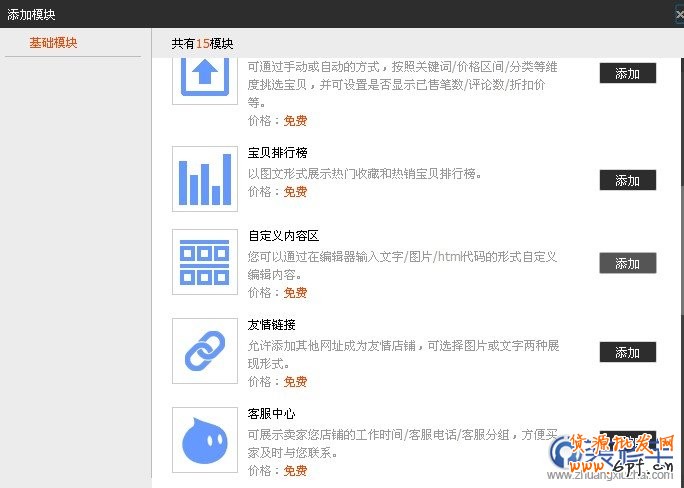 nclick="window.open('/uploads/allimg/1311/1_131129193540_1.jpg')" />2、添加一個【自定內容區】,點擊【添加】,就出現了一個自定義內容模塊: