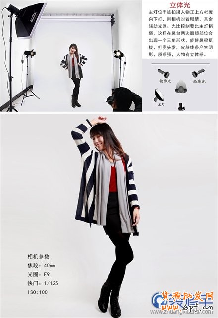 上面這三張圖片是通過不同的布光技巧“全白背景布光”、“立體光”、“大平光布光”拍攝出來的不同效果的模特圖片。供淘寶服裝賣家參考。