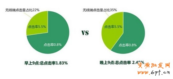 因為,時間設(shè)置對于點擊率有重大的影響。有相關(guān)數(shù)據(jù)顯示,不同的時間段,來自移動端(Pad、Android、 iPhone)的訪問占的比例也有不同。移動端的點擊率,一般是PC端的5-10倍。因此,移動端流量占比高的時段,總體點擊率會自然變高。所以時間的設(shè)置,最好是根據(jù)移動端的訪問量數(shù)據(jù)進行安排,就能發(fā)揮最大的效果。