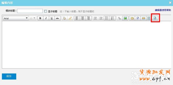 然后先保存,之后再次打開裝修寶貝詳情頁,編輯之前保存好的自定義模塊,在點開編輯窗口的右邊,有一個“編輯HTML源碼”命令按鈕,點擊,然后把之前保存在TXT文檔中的代碼復制進去,