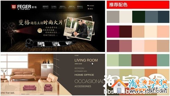 棕色和金色黑色搭配,會有高貴、經典的沉淀感。這種配色方法,我們經常可以在各種奢侈品站點和VIP平臺上看到;棕色和白色會讓人感覺更沉穩莊重一些,產生相對舒適柔軟的感覺;而淡棕色和黃色、橙色搭配,會有比較生活化,也會有高端大牌的感覺。后面這兩種配色方式,適用于做家紡、家居搭配的賣家。