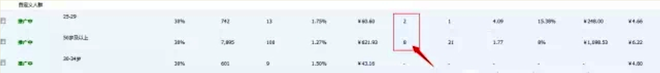 這個數據還不是很多,小數據還是不能做太大的定義,那么我們先做大概分析,等數據多了在做判斷,25-29歲轉化率比較高,那么可以調整溢價比率,30-34歲基本上沒有轉化,可以考慮降低溢價比率或者刪掉,而50歲以上的人點擊最多,但是轉化不是很大,這個時候可以把這個人群再次建立定向計劃,看哪個消費層級的人是轉化最差的,所以我們又繼續建立計劃。
