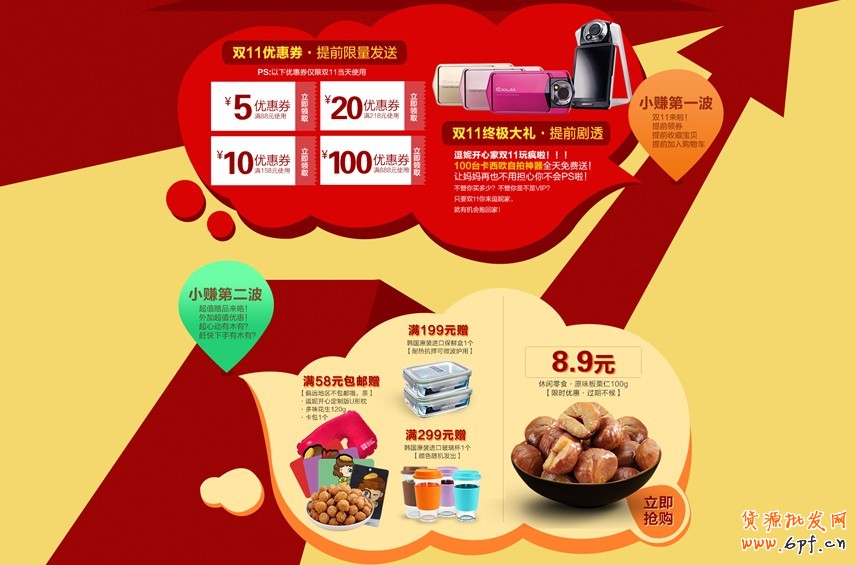 8、創意主要就是突出雙11的各種優惠和利益,引導加入購物車、優惠券、滿贈、抽獎、預售、免單