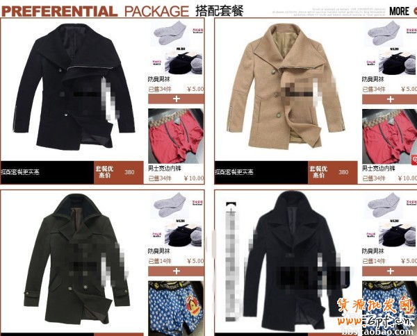雖然我的主推產品就一個,但是每賣一筆主推的風衣,卻能給我帶來3個好評,主要是配套銷售做的好!風衣原價500,限時折扣380,購買套餐更劃算,風衣+內褲+襪子,套餐價也是380,更多的人會選擇套餐購買哦,所以做好配套銷售真的很重要!做一個配套銷售的圖片,放在首頁,讓搭配銷售更加醒目!