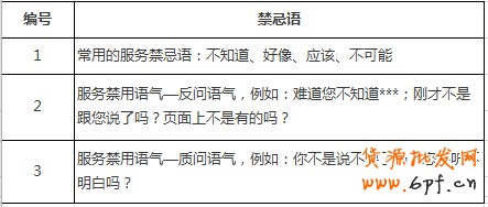 5、客服禁忌語