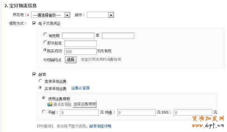 2)填寫電子憑證寶貝有效期,選擇寶貝支持的線下商家核銷網店;