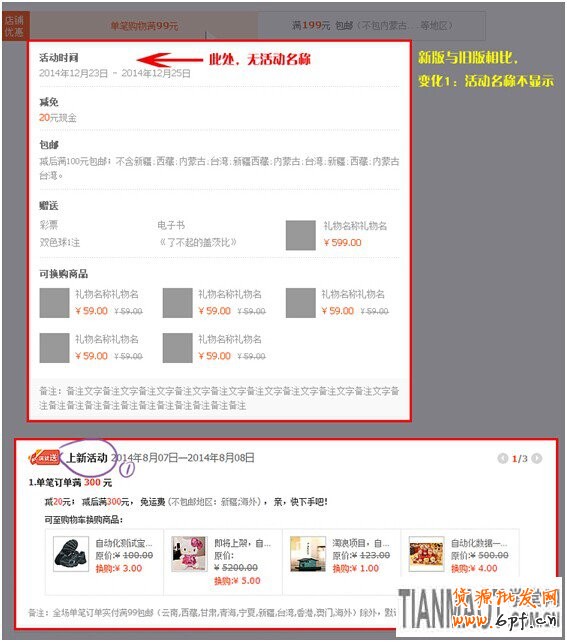 改動點三:賣家設置的“滿就送”活動,在詳情頁展示時,活動名稱不顯示。
