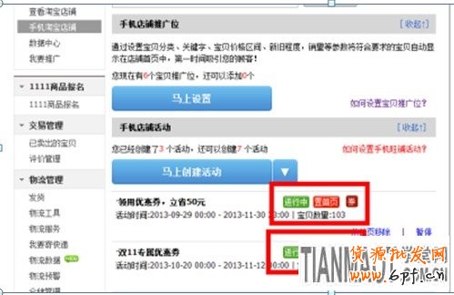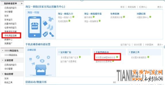 第三步:點擊店鋪后臺左側導航中的【手機淘寶店鋪】,再選擇【手機店鋪基礎功能設置】里面的【設置店鋪營銷活動】