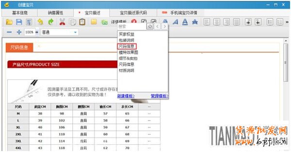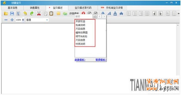 1、登陸淘寶助理—寶貝管理—創建寶貝—寶貝描述,選擇詳情模板: