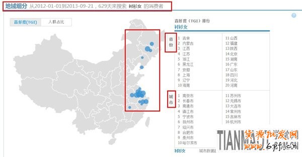 第一,搜索消費主要地區集中:京津唐、江浙滬,那我們開店的地址和推廣的地區就又有了進一步的認識。