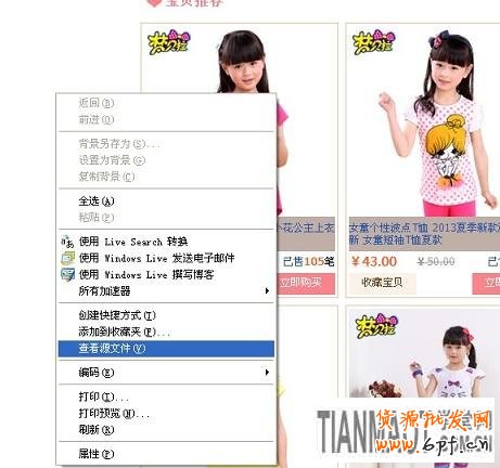 一:用瀏覽器打開要復(fù)制導(dǎo)航CSS店鋪的首頁(yè),在他店鋪的空白處右擊鼠標(biāo)--選擇“查看源文件”(或者是“查看源代碼”、“查看網(wǎng)頁(yè)源代碼”)