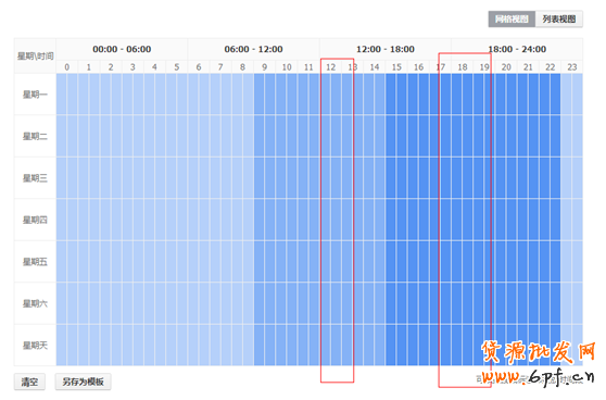 在看投放設備的時候,如果發現移動設備的點擊率和投產比高于PC端,那可以將移動設備的推廣力度加大。在這里,除了提升移動端折扣外,我們還可以把中午12:00-13:30和晚上17:30-19:30之間的投放調高,因為寶寶的媽媽們在上班時間可能比較忙,但是在吃飯時間反而可以用手機淘寶APP來瀏覽寶貝。