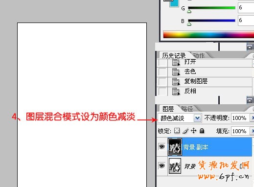 步驟四,將背景副本圖層的圖層混合模式設為顏色減淡,這時圖像幾乎為一張白紙。