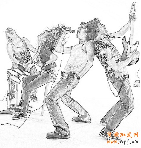 這里解釋下第3,4,5步操作的原因,當圖像反相并與原圖像“顏色減淡”混合,由顏色減淡的原理,圖像成了白紙,但提取反相后的圖像的最小值再與圖像顏色混合,兩個圖層的微細差異這時候就可以顯現出來,這個就是我們所要的線條。