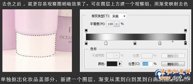5、用上面的方法,對化妝品每個層單獨摳出來,用黑白漸變,結合加深減淡工具處理細節。
