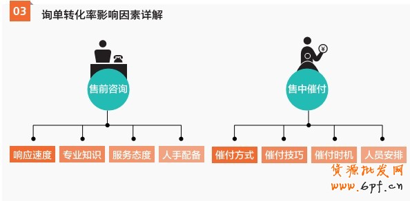 為了提升店鋪整體成交轉化率,必須要先找出轉化率的真正影響因素,店鋪成交轉化率的組成有三個方面:call in轉化率、詢單轉化率、靜默成交轉化率。
