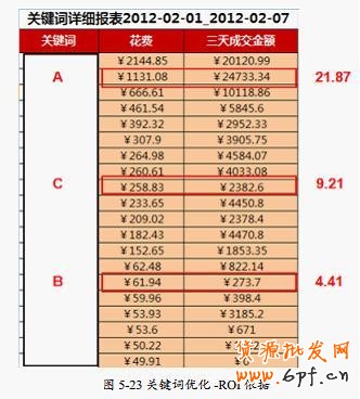 ROI在利潤范圍之內,則保留該關鍵詞,并根據利潤狀況酌情增加該關鍵詞的投入,如A詞;