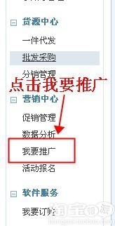 2、在賣家中心的左側欄找到營銷中心的“我要推廣”。