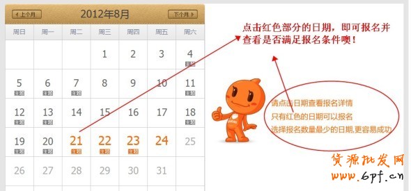 點擊紅色部分的日期,即可報名。