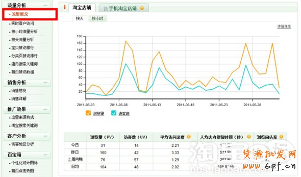 因為本頁面的作用類似于首頁,所以就不詳細說了,但還需要補充一點:淘寶的周期應該是按周區分的,在此頁面你就可以很方便的查看到在一周里,哪天的流量是比較高,而哪天是比較低的,對此我們便可以更大程度的節約廣告的成本,著重投資在流量大的那天了。