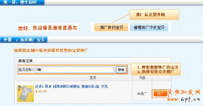 首先,登陸淘寶直通車,選擇店鋪要推廣的寶貝: