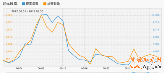 目前扇子市場表現良好,6月中旬開始扇子賣瘋了。淘寶指數數據顯示,6月9號,12號,18號出現了搜索和成交的幾次波峰。在6月25號再次出現一個小波峰。