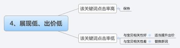 如點擊率低于關鍵詞點擊率,則考慮相關性,如相關性好,可以考慮提升出價,如相關性不好,則可以替換關鍵詞。